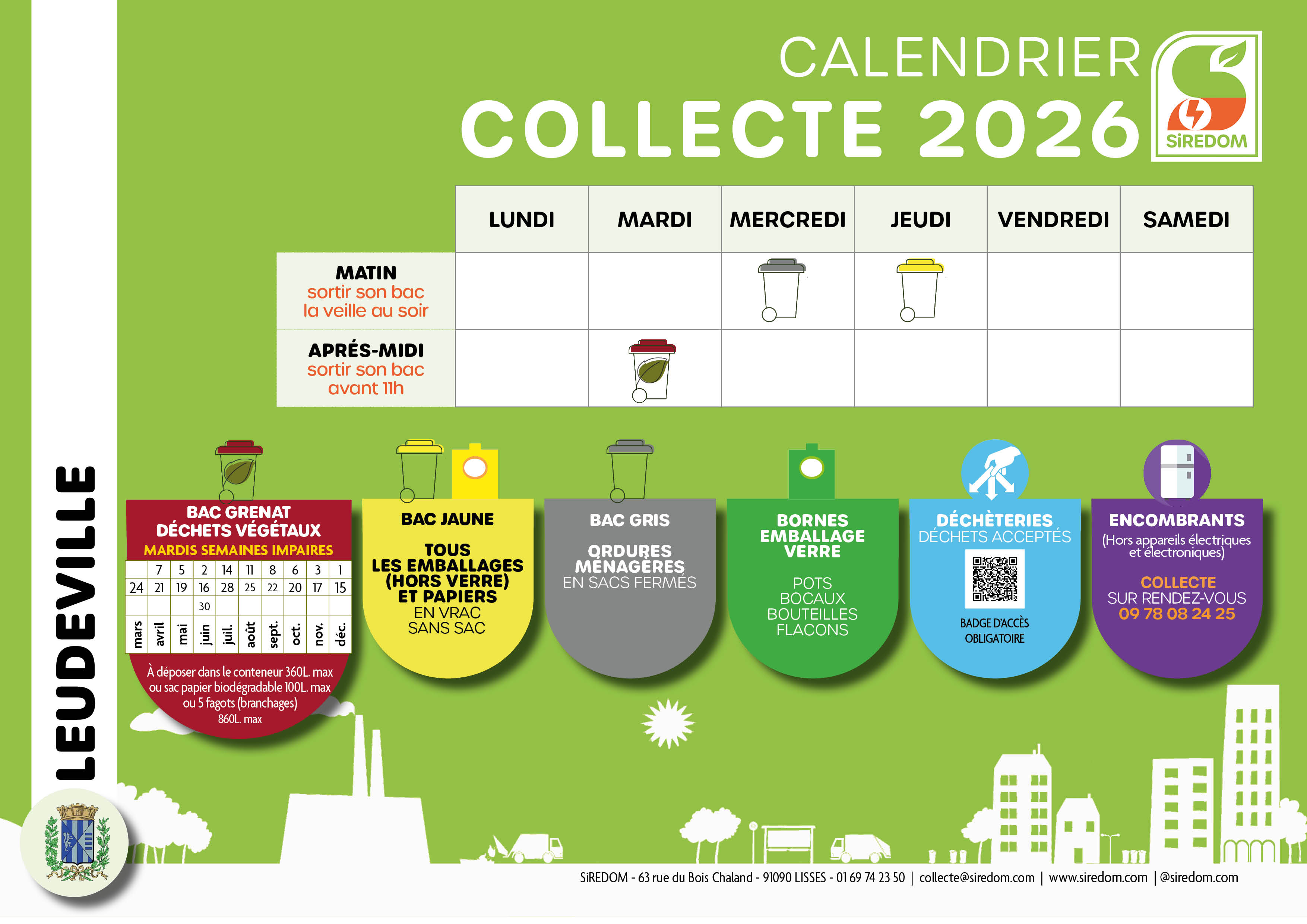 - Pour toute question concernant vos bacs de collecte, contactez directement la mairie au 01.69.14.81.52