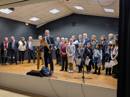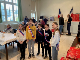 03 janvier : Vœux du maireLe Conseil Municipal des Enfants, de gauche à droite : Raphaël, Aaron, Camille, Raphaël, Léa et Capucine (au micro).