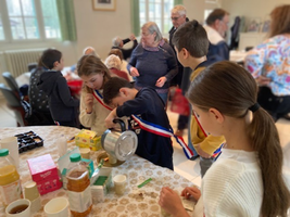 4 enfants du Conseil Municipal des Enfants : Abel, Alexis, Clément et Kélian ont spontanément proposé leur aide et leur participation à ce moment intergénérationnel.