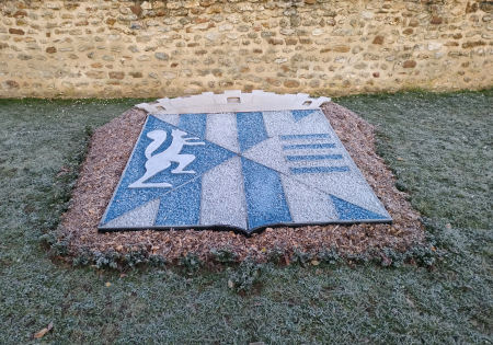 - Les armoiries de Leudeville devant être uniques, l'écu de l'église a été complété par le champ des armes de la famille PETIT, derniers seigneurs de Leudeville (famille présente depuis 1681).